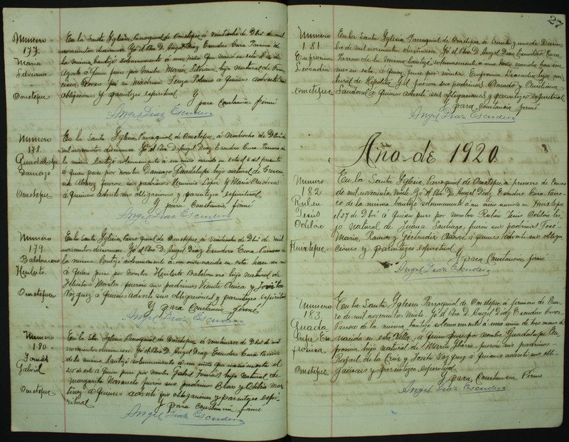 Libro 43. Bautismos, 1919-1921. Archivo Parroquial de Santiago Apóstol. Sección Sacramental