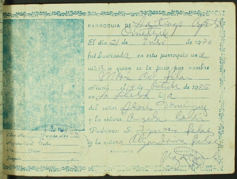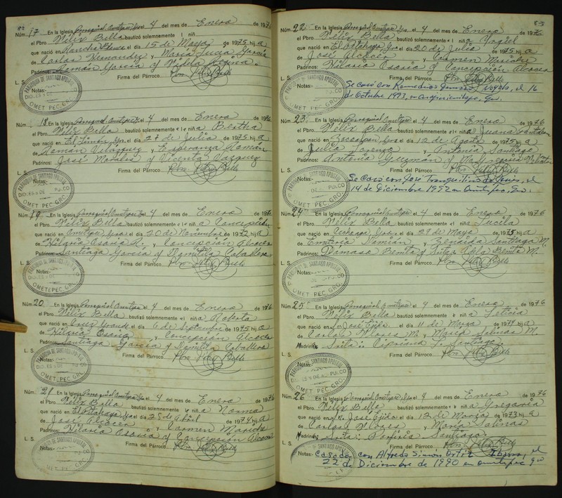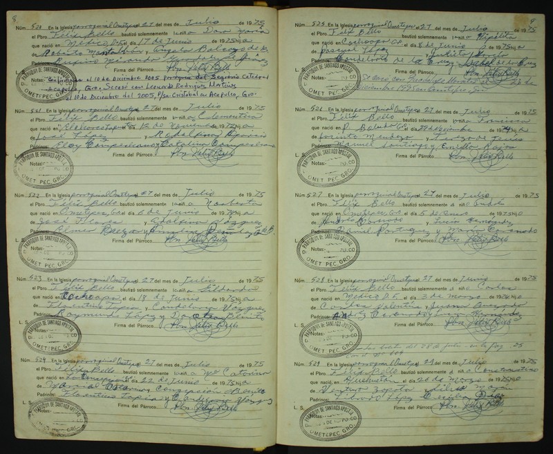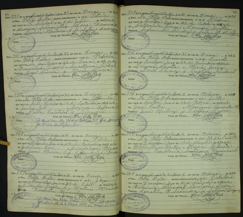 Libro 114. Bautismos de la parroquia de Ometepec, 1975-1976. Archivo Parroquial de Santiago Apóstol. Sección Sacramental
