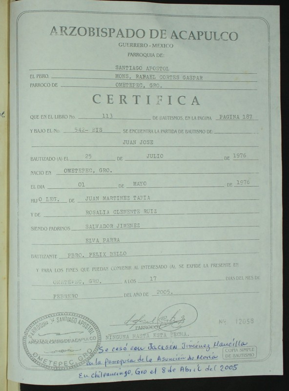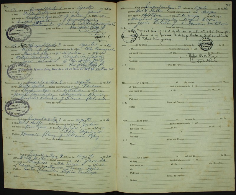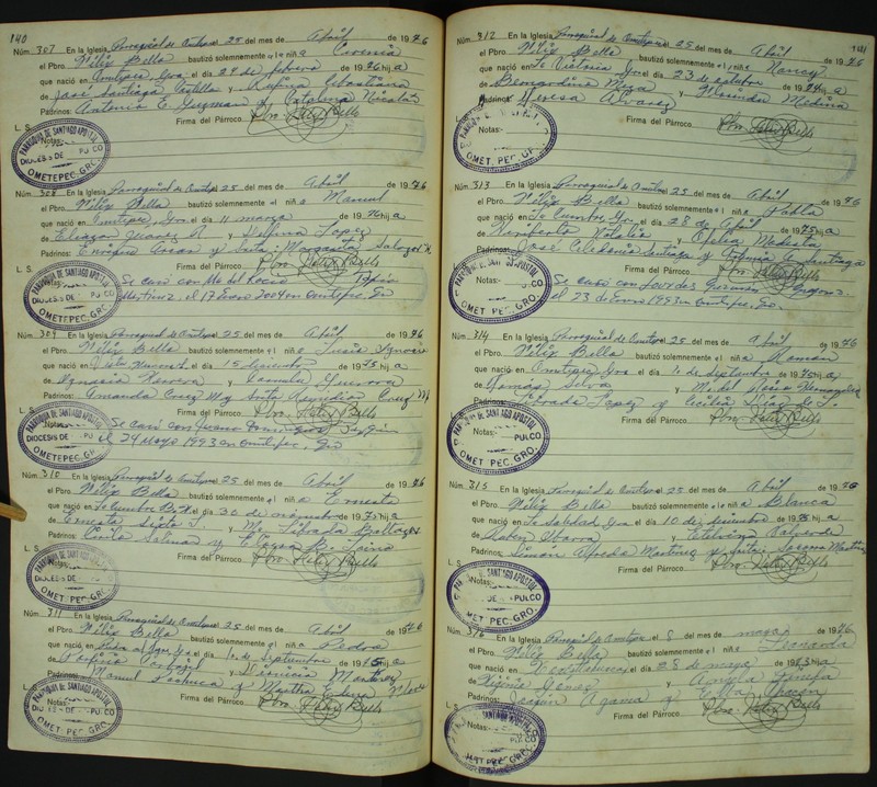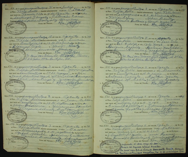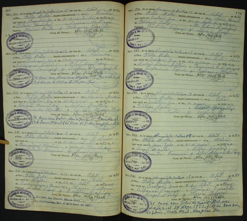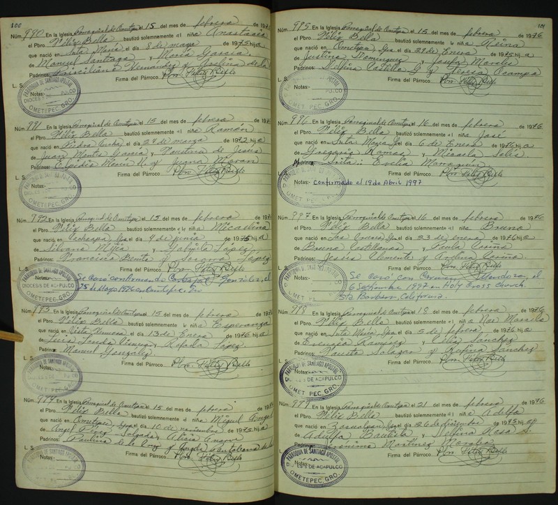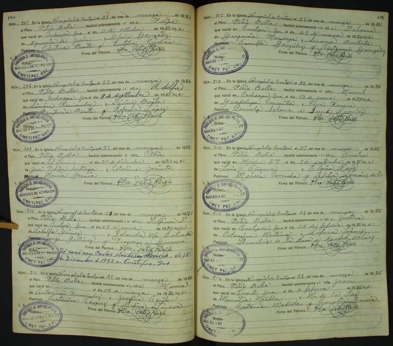 - Libro 114. Bautismos de la parroquia de Ometepec, 1975-1976