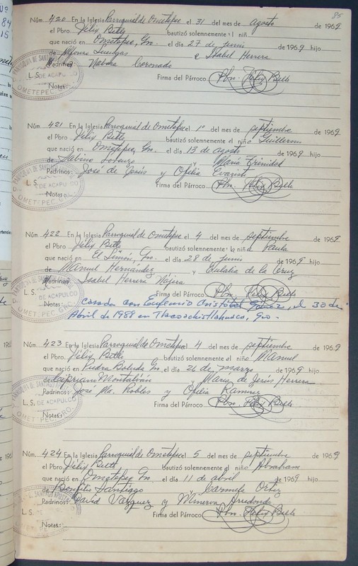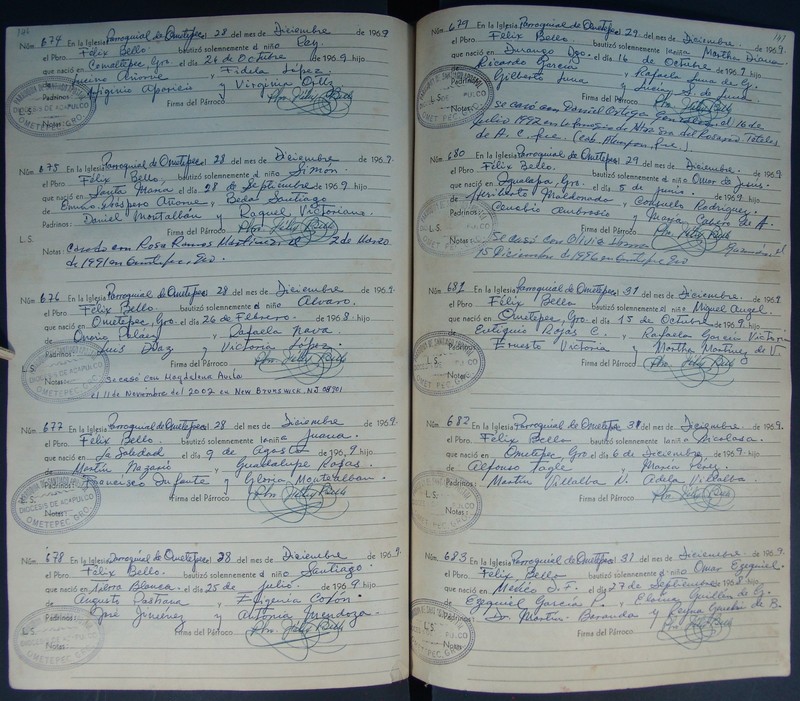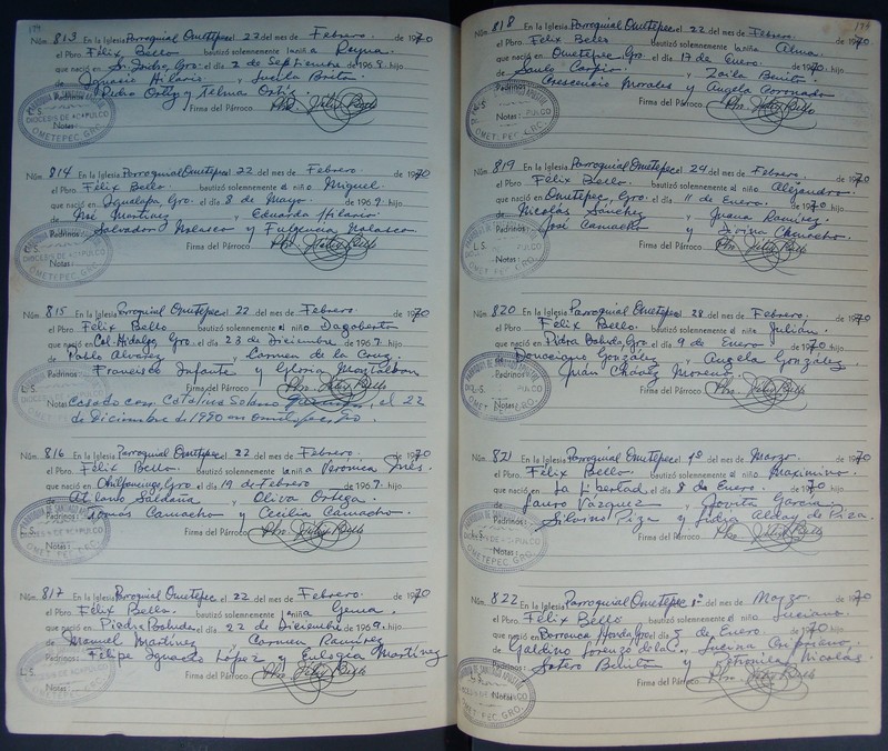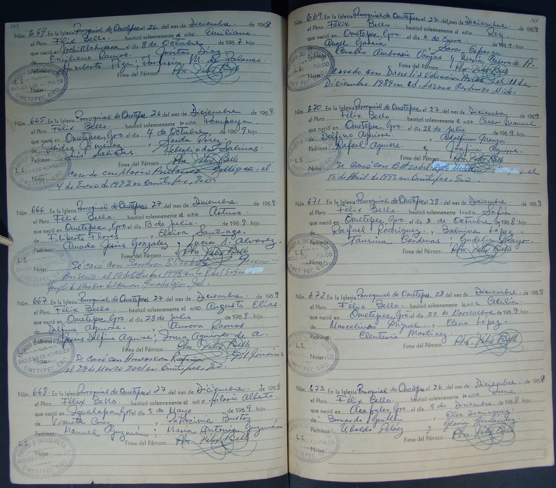 - Libro 108. Bautismos de la parroquia de Ometepec, 1969.1970