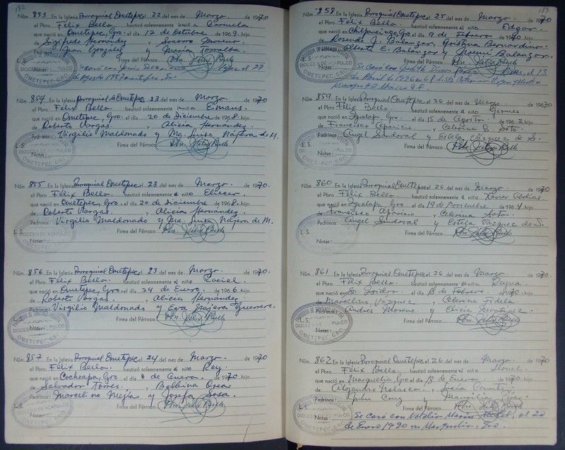 Libro 108. Bautismos de la parroquia de Ometepec, 1969.1970. Archivo Parroquial de Santiago Apóstol. Sección Sacramental