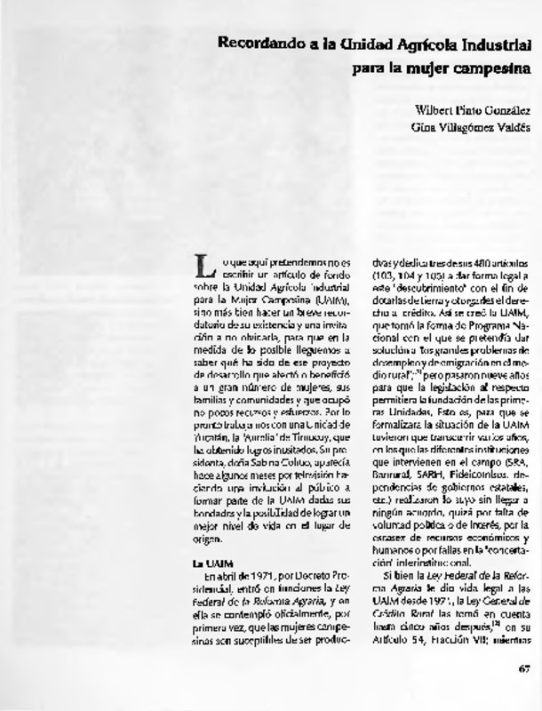 - Recordando a la Unidad Agrícola Industrial para la mujer campesina