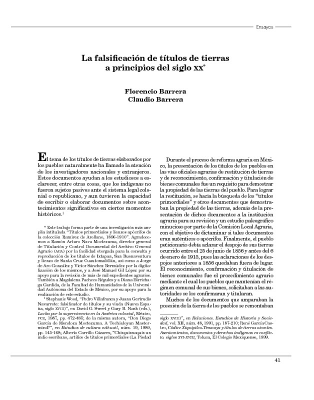 - Este trabajo forma parte de una investigación más amplia intitulada “Títulos primordiales y lienzos apócrifos de la colección Ramírez de Arellano, 1896-1910”. Agradecemos a Ramón Arturo Nava Moctezuma, director general de Titulación y Control Documental del Archivo General Agrario (aga) por la facilidad otorgada para la consulta y reproducción de los títulos de Ixtapan, San Buenaventura y lienzo de Santa Cruz Cuautomatitlán, así como a Jorge de Aro González y Víctor Sánchez Bermúdez por la digitalización de los mismos, y a José Manuel Gil López por su apoyo para la revisión de más de mil expedientes agrarios. También a Magdalena Pacheco Régules y a Diana Birrichaga Gardida, de la Facultad de Humanidades de la Universidad Autónoma del Estado de México, por su apoyo para la realización de este estudio.