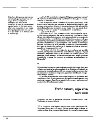 - Fragmento del libro de memorias Palimpsest, Ramdom House, 1996. “En el verano de 1946 dejé mi trabajo como editor adjunto en E.P. Dutton en Nueva York. Al seguir Europa cerrada a los turistas, tomé hacia el sur de la frontera. Quería salir de Nueva York y de lo que para mí había sido, hasta ese momento, una cadena perpetua en prisión: doce años de escuela, casi tres en el ejército, medio año en una editorial. Quince años de hacer lo que no quería hacer era la mayor parte de mi vida. Tenía veinte años al llegar a la ciudad de Guatemala…”