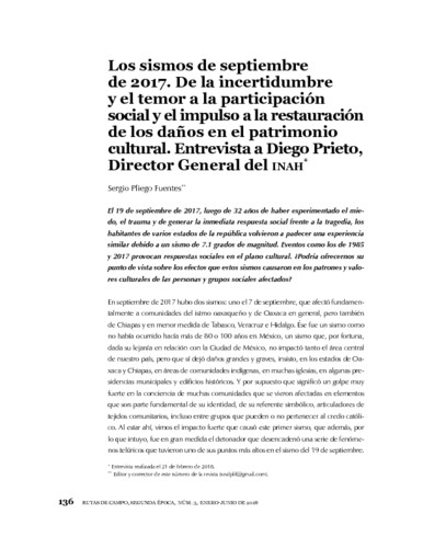 - Número de revista Rutas de Campo. Los sismos de septiembre de 2017 en México. Miradas antropológicas Num. 3, Segunda época, Año 2 (2018) enero-junio