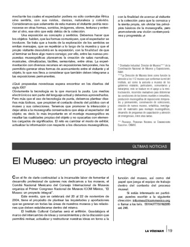 - URL Últimas noticias. El museo: un proyecto integral. La voz INAH. Núm. 6 (2004)