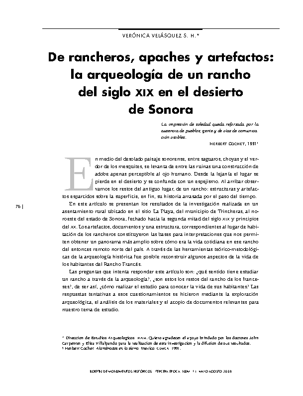 - De rancheros, apaches y artefactos: la arqueología de un rancho del siglo XIX en el desierto de Sonora