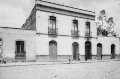 - Hombres y niños fuera de una casa en la calle Héroes de Nacozari No. 10 de la cd. de México.