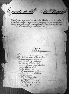 Hoja con datos del ejercito de Oriente, división del General Negrete