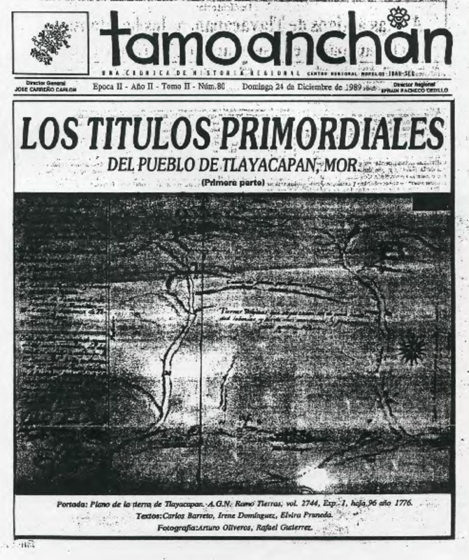 - - Los títulos primordiales del pueblo de Tlayacapan, Mor. Primera parte por Carlos Barreto Mark.