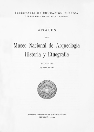 - Anales del Museo Nacional de Arqueología, Historia y Etnografía N°. 28 Tomo III (1936-1938) Quinta Época (1934-1938)