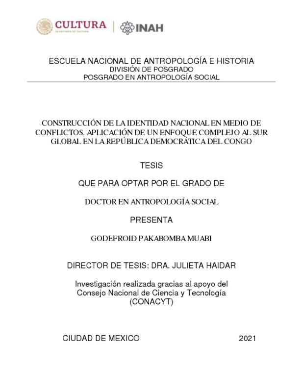 - Tesis para obtener el grado de Doctorado en Antropología Antropología Social