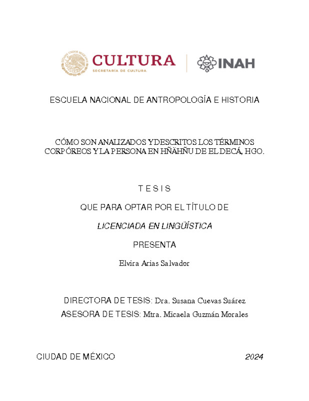 - Cómo son analizados y descritos los términos corpóreos y la persona en hñähñu de El Decá, Hgo.