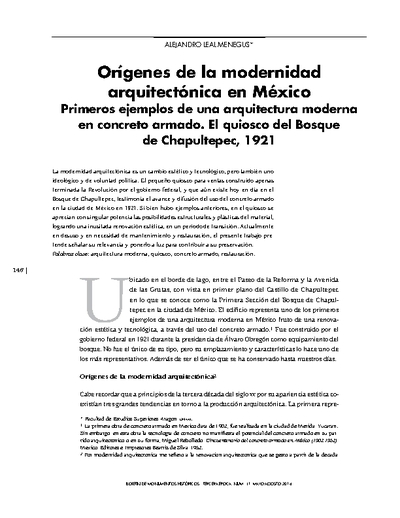 Orígenes de la modernidad arquitectónica en México. Primeros ejemplos de una arquitectura moderna en concreto armado. El quiosco del Bosque de Chap ...