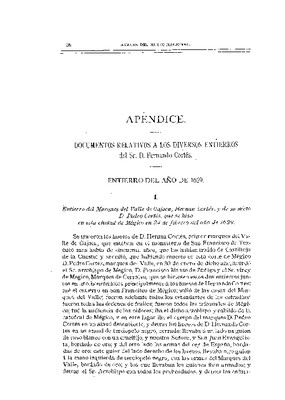 Apéndice. Documentos relativos a los diversos entierros del señor Fernando Cortés ...