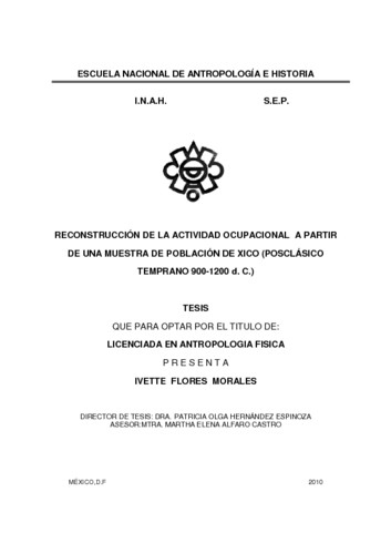 Reconstrucción de la actividad ocupacional a partir de una muestra de población de Xico (Posclásico temprano 900-1200 d.C.) ...