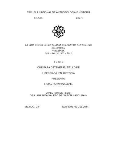 La vida cotidiana en el Real Colegio de San Ignacio de Loyola, viscainas del año de 1800 a 1815 ...