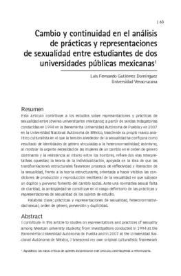 - Cambio y continuidad en el análisis de prácticas y representaciones de sexualidad entre estudiantes de dos universidades públicas mexicanas