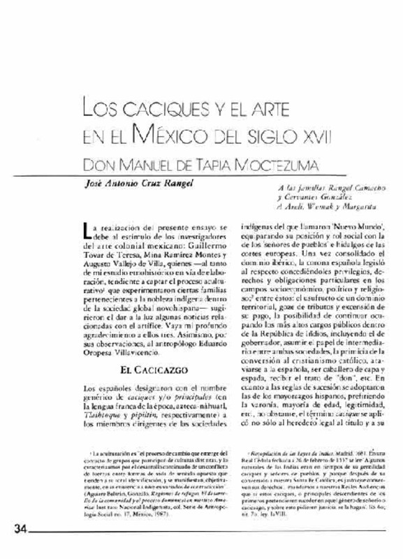 Los caciques y el arte en el México del siglo XVII. Don Manuel de Tapia Moctezuma