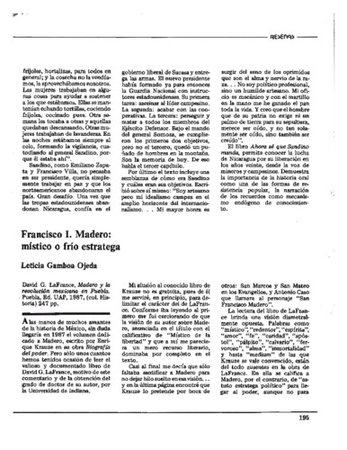 - David. G. LaFrance, Madero y la revolución mexicana en Puebla, Puebla, Ed. UAP, 1987, (col. Historia) 247 pp.