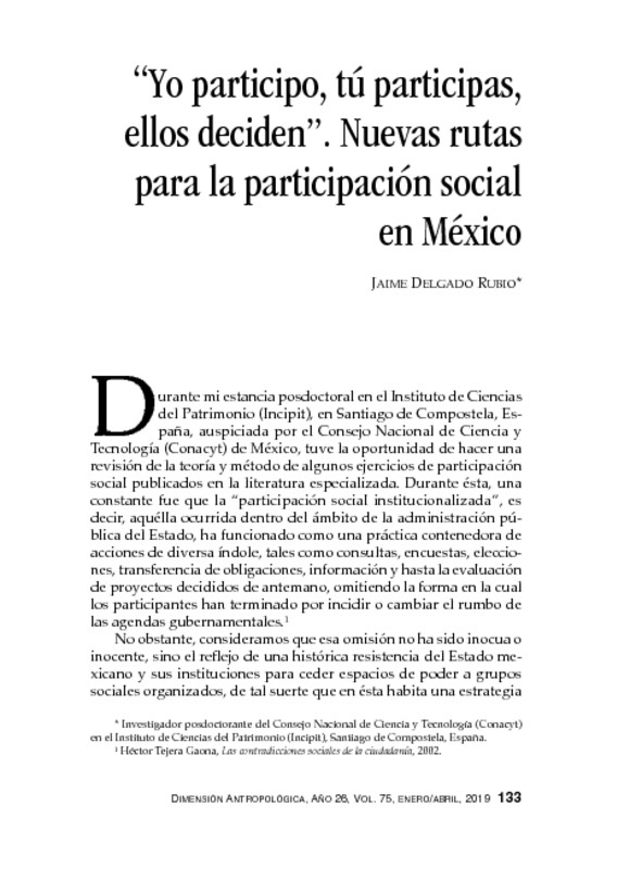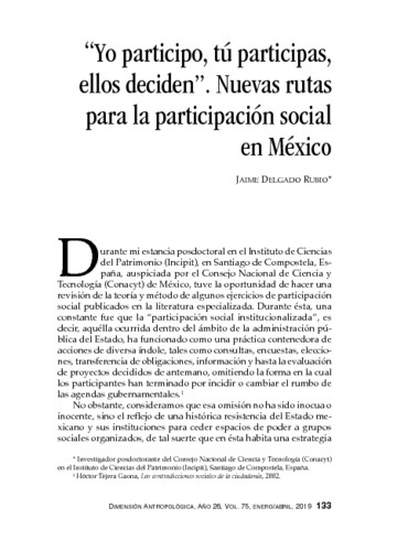 “Yo participo, tú participas, ellos deciden”. Nuevas rutas para la participación social en México