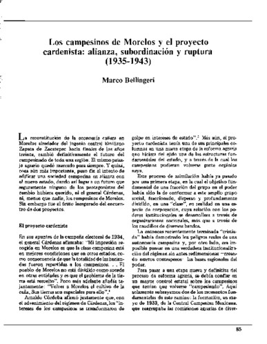 - Los campesinos de Morelos y el proyecto cardenista: alianza, subordinación y ruptura (1935-1943)