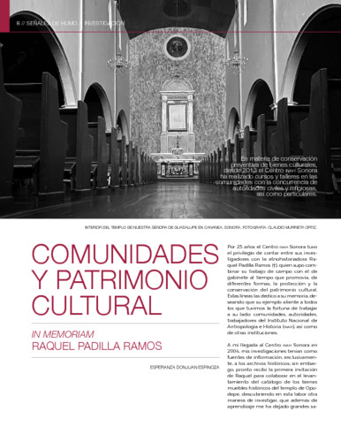 - Comunidades y patrimonio cultural. In memoriam Raquel Padilla Ramos