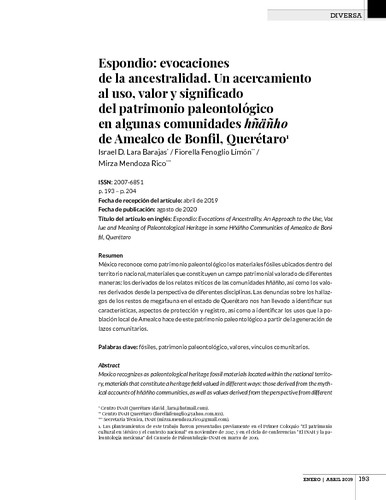 - Espondio: evocations of ancestrality. An approach to the use, value and meaning of paleontological heritage in some hñäñho communities of Amealco de Bonfil, Querétaro