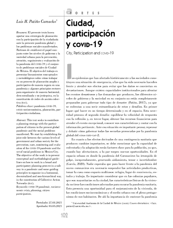 - Ciudad, participación y COVID-19