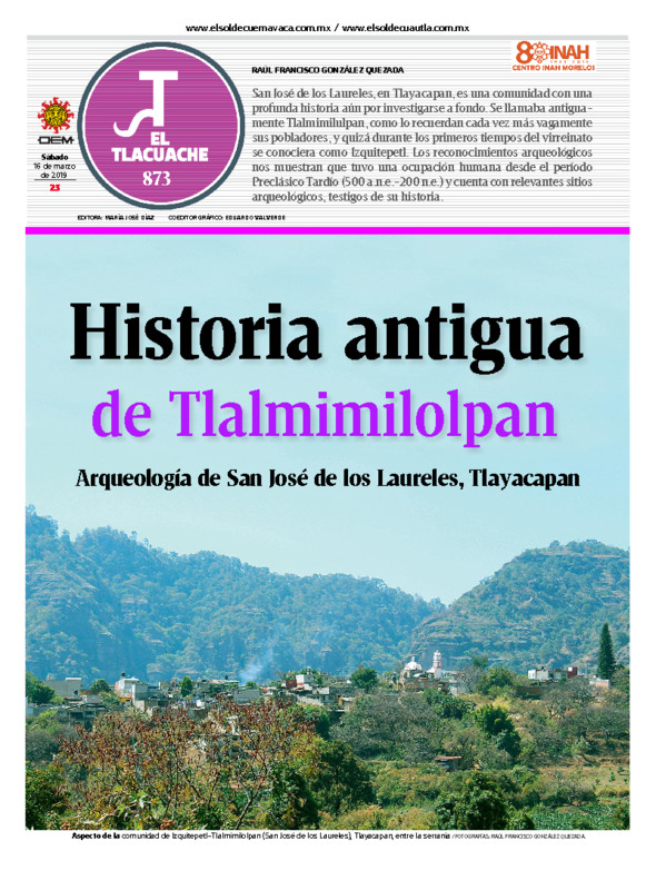 - Historia antigua de Tlalmimilolpan. Arqueología de San José de los Laureles, Tlayacapan por Raúl Francisco González Quezada