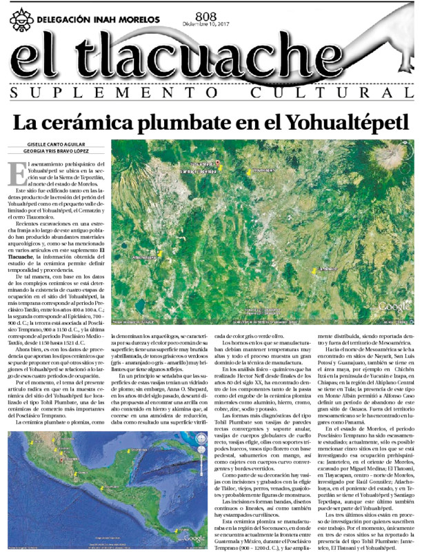 - La cerámica plumbate en el Yahualtépetl por Giselle Canto Aguilar y Georgia Yris Bravo López. - Huellas del pasado: inmuebles religiosos que perduran en el centro de Tlayacapan por Stefany Martínez Gómez y Julio Alberto Clavel Gómez.