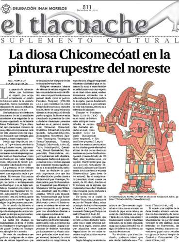 - La diosa Chicomecóatl en la pintura rupestre del noreste por Raúl Francisco González Quezada. - Encuentros con el cacao por Mtra. América Malbrán Porto.