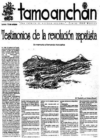 - - Testimonios de la revolución zapatista. En memoria a Fernando Horcasitas. - Medicina tradicional: las enfermedades o padecimientos y sus recursos terapéuticos por Margarita Avilés Flores.