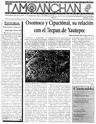 - - Editorial por Heladio Rafael Gutiérrez Yañéz. - Oxomoxo y Cipactónal, su relación con el Tecpan de Yautepec por Hortensia de Vega Nova. - La piedra del águila por Juan Antonio Siller Camacho. - Memoria fotográfica por Lázaro Sandoval M.