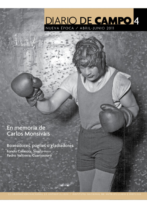 - - Presentación. - El patrimonio cultural de los chicanos, ¿parte del mexicano? por Francisco Javier Guerrero. - Lo pintoresco y el costumbrismo en tipos populares mexicanos por Sonia Arlette Pérez. - Y la ciudad miró al cielo. El globo dirigible de el buen Tono por Denise Hellion. - En memoria de Carlos Monsiváis por Lilia Venegas. - ¡A la salud del Bohemio! Carlos Monsiváis y la nueva crónica por Laura Alicino. - Monsiváis: mirada que desarma por Francisco Pérez Arce. - Carlos Monsiváis: la pausa del cronista por Rolando Cordera Campos. - Causas perdidas por Carlos Monsiváis. - A la insolencia conservadora, las herencias ocultas por Carlos San Juan Victoria. - Carlos Monsiváis: humor, crítica, ensayo, ideología, critica literaria, perfil por Luis Barjau. - Para nuestro entrañable Carlos Monsiváis por José Carlos Melesio Nolasco. - 1940: el espectáculo "sicaliptico" en la ciudad de México y Carlos Monsiváis por Gabriela Pulido Llano. - Carlos Monsiváis: su última entrevista por Katia González-Hermosillo Castillo. - El 68: literatura y movimiento por Adolfo Sánchez Rebolledo. - Boxeadores, púgiles o gladiadores. Fondo Casasola, Sinafo-INAH. Pedro Valtierra, Cuartoscuro por Mariana Zamora. - Carlos Monsiváis: el rey Midas del arte popular. entrevista con Rafael Matos por Alma Olguín Vázquez. Gabriela Pulido Llano, Mulatas y negros cubanos en la escena mexicana. 1920-1950, México, INAH (Científica), 2010, 160 pp. por Delia Salazar Anaya. - Samuel Villela, Sara Castrejón, fotografo de la Revolución, México, INAH, 2010, 151 pp. por Rebeca Monroy Nasr. - Revista Anthropological Theory, Estados Unidos (http://ant.sagepub.com). - Por siempre querida Elsa. - Seminario Problemática actual del patrimonio cultural por Jesús Antonio Machuca.