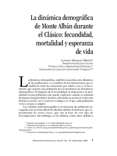La dinámica demográfica de Monte Albán durante el Clásico: fecundidad, mortalidad y esperanza de vida ...