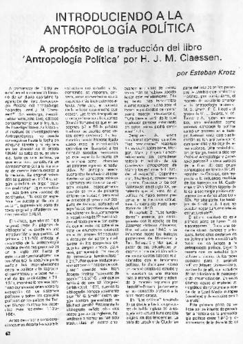 Introducción a la Antropología política. A propósito de la traducción del libro 'Antropología Política' por H. J. M. Claessen ...