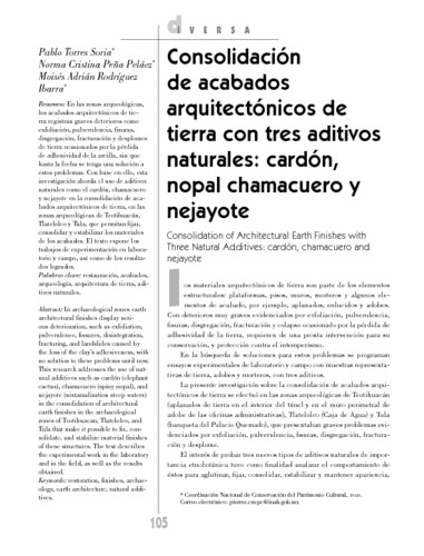 Consolidación de acabados arquitectónicos de tierra con tres aditivos naturales: cardón, nopal chamacuero y nejayote ...