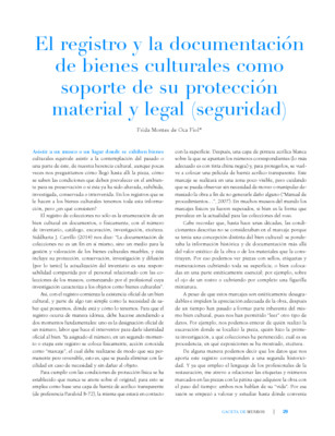 El registro y la documentación de bienes culturales como soporte de su protección material y legal (seguridad) ...
