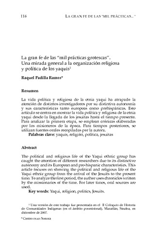 La gran fe de las “mil prácticas grotescas”. Una mirada general a la organización religiosa y política de los yaquis ...
